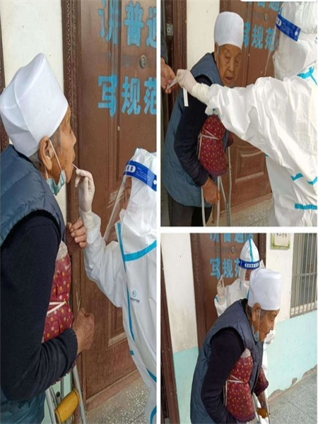 回回寨社區(qū)針對(duì)行動(dòng)不便、殘疾人等特殊人群,檢測(cè)現(xiàn)場(chǎng)特地出門迎接,到身邊采集,為特殊人群提供便利。