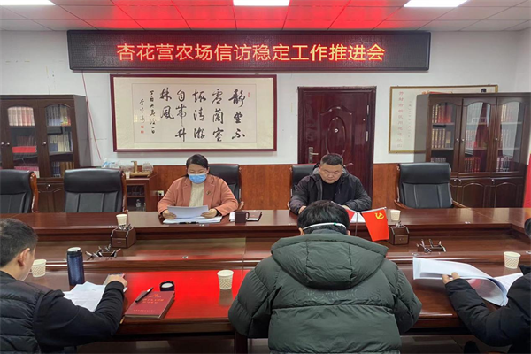 1月6日下午,開封市示范區(qū)杏花營農(nóng)場黨書記郝敏召開信訪穩(wěn)定工作推進會,對農(nóng)場目前信訪安全問題進行研判,場班子成員及信訪辦工作人員參加。