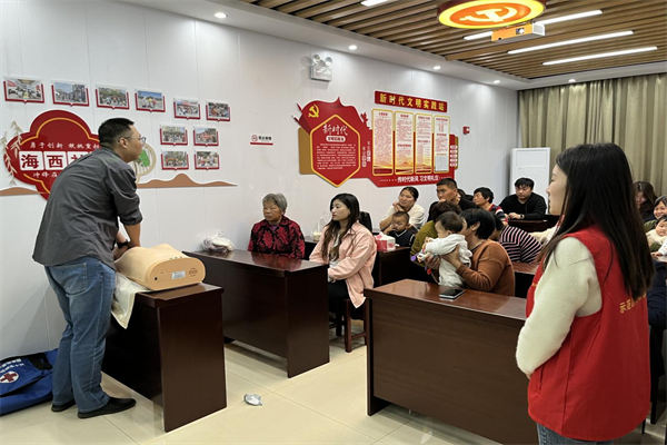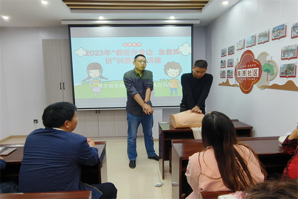 中新河南網(wǎng)10月24日電:為進(jìn)一步宣傳普及防災(zāi)減災(zāi)、自救自護(hù)知識(shí),增強(qiáng)廣大群眾的安全防范意識(shí),提升避險(xiǎn)防災(zāi)和自救的能力,10月24日,開封市示范區(qū)杏花營農(nóng)場(chǎng)政協(xié)委員聯(lián)絡(luò)辦公室組織下沉政協(xié)委員和轄區(qū)居民群眾,在海西社區(qū)新時(shí)代文明實(shí)踐站開展2023年“救你在身邊 急救知識(shí)”科普講座活動(dòng),邀請(qǐng)開封市藍(lán)鯨水上救援隊(duì)副隊(duì)長(zhǎng)、政協(xié)委員鄭繼元進(jìn)行溺水救援知識(shí)授課。農(nóng)場(chǎng)黨委副書記、政協(xié)委員、政協(xié)召集人孫紅光,海西社區(qū)工作人員及社區(qū)群眾30余人參加講座。