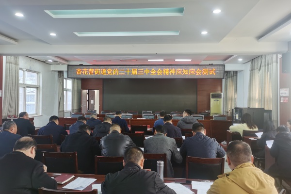 11月20日上午,開封市示范區(qū)杏花營街道組織開展“黨的二十屆三中全會精神”應(yīng)知應(yīng)會測試。班子成員、社區(qū)支書、副主任(副書記)30余人參考測試。