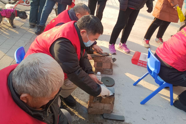 中新河南網(wǎng)12月31日電:12月31日,在開(kāi)封市順河回族區(qū)曹門(mén)街道民心社區(qū)門(mén)前廣場(chǎng),民心社區(qū)工作人員、開(kāi)封市東望志愿服務(wù)團(tuán)隊(duì)開(kāi)展磨剪子、戧菜刀便民服務(wù)活動(dòng)。