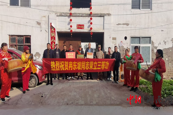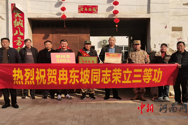 中新河南網(wǎng)2月18日電:“一人立功,全家光榮”,2月18日,開封市示范區(qū)杏花營(yíng)農(nóng)場(chǎng)黨委政府到西網(wǎng)社區(qū)為榮獲“三等功”的現(xiàn)役軍人冉東坡家庭送上立功喜報(bào)和慰問(wèn)金,讓立軍功的榮譽(yù)與溫情浸潤(rùn)軍民心田。