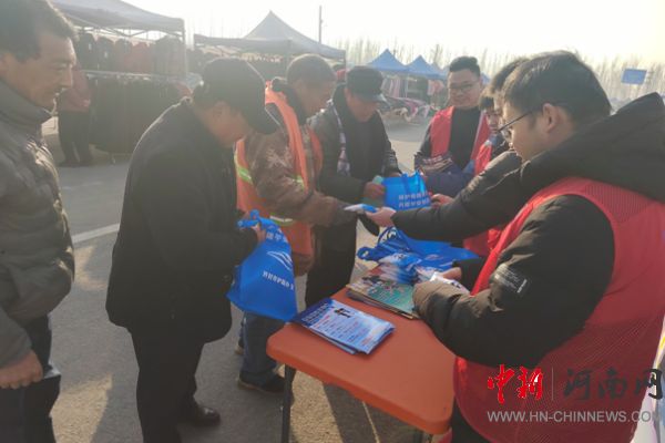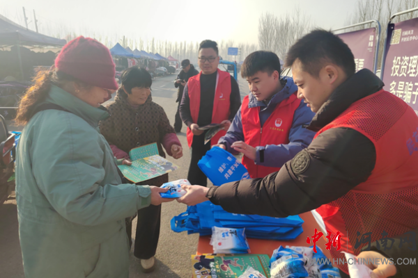 開封市示范區(qū)杏花營(yíng)農(nóng)場(chǎng)綜治中心在農(nóng)場(chǎng)集市開展反電詐宣傳活動(dòng)