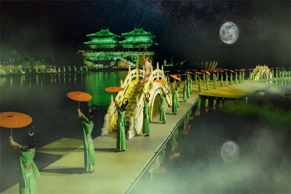演出再現(xiàn)了《清明上河圖》中的市井風(fēng)情,再現(xiàn)了《東京夢(mèng)華錄》中的繁華盛景,再現(xiàn)了大宋王朝的風(fēng)華絕代。整場(chǎng)演出的故事情節(jié)、歷史文化、背景意義,都令人向往,惹人深思!如果最近的你在追《夢(mèng)華錄》,對(duì)北宋東京,對(duì)宋朝,對(duì)宋文化產(chǎn)生了向往,那就一定要來(lái)看這場(chǎng)演出!劇中的盛世東京,都濃縮在這場(chǎng)演出當(dāng)中,北宋東京的繁榮錦繡,富貴迷人都在《大宋·東京夢(mèng)華》這場(chǎng)演出當(dāng)中。7月1日起,每晚相伴,夢(mèng)回東京,共賞繁華;景龍湖畔,不見(jiàn)不散。(劉迎輝)