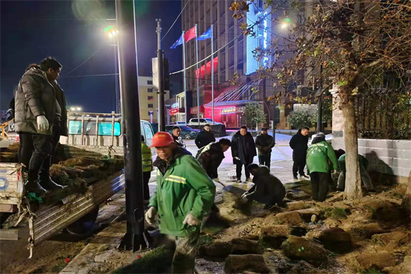 為扎實做好示范區(qū)冬季園林綠化提升工作,推動城市綠化環(huán)境高質(zhì)量發(fā)展,園林綠化黨支部的黨員干部職工帶領(lǐng)綠化工人克服冬季夜間氣溫驟降的不利條件,對周天路金明西街,連夜開展綠化提升改造工作。