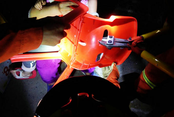 河南襄城:一名小女孩手指被卡塑料椅 消防隊員立即趕赴破拆救援