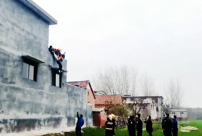 到達(dá)現(xiàn)場(chǎng)后,救援人員發(fā)現(xiàn)該男子正站在一處自建房窗戶外沿上方。救援人員上前與其進(jìn)行溝通,勸阻不要沖動(dòng)做傻事,但男子反應(yīng)激烈,不讓他人靠近。