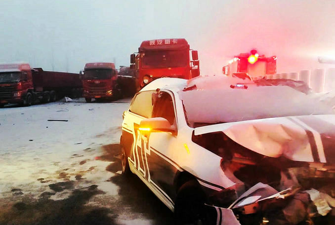 河南許昌:大霧天氣引發(fā)多車連環(huán)追尾,消防隊員火速趕赴破拆救援