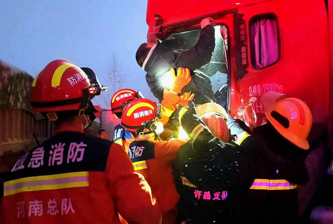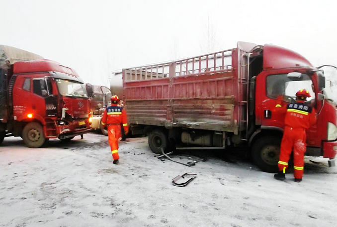 本網訊(張培 姚浩瀚)2022年12月29日05時49分,許昌市東城區(qū)消防救援大隊接到群眾報警稱:許昌東高速口向東新107國道附近多輛貨車發(fā)生車禍,有人員被困。