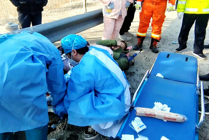 到達現(xiàn)場后,救援人員發(fā)現(xiàn):一輛渣土車與一輛半掛車發(fā)生追尾,因碰撞沖擊導致渣土車駕駛室嚴重變形,駕駛員卡在方向盤與座位之間無法脫困。