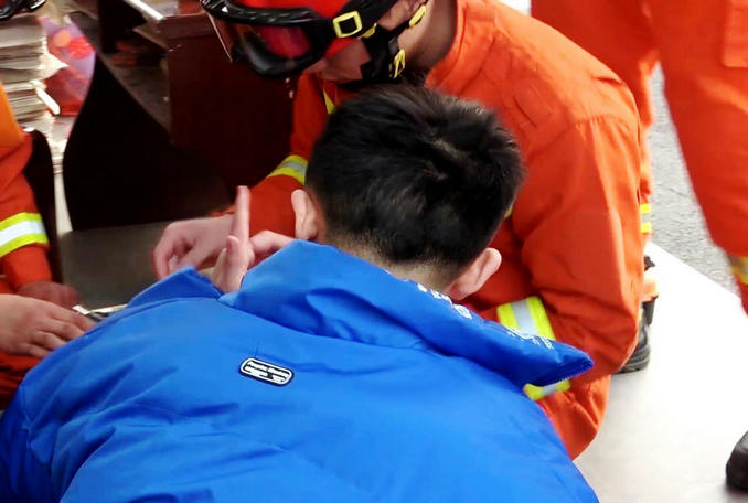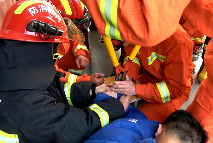 河南襄城:開學(xué)首日男生貪玩不慎卡手 消防隊員緊急趕赴破拆救援