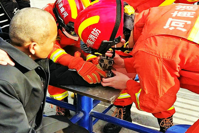 經(jīng)過(guò)一番精密細(xì)致地操作之后,救援人員成功將戒指破拆取下。