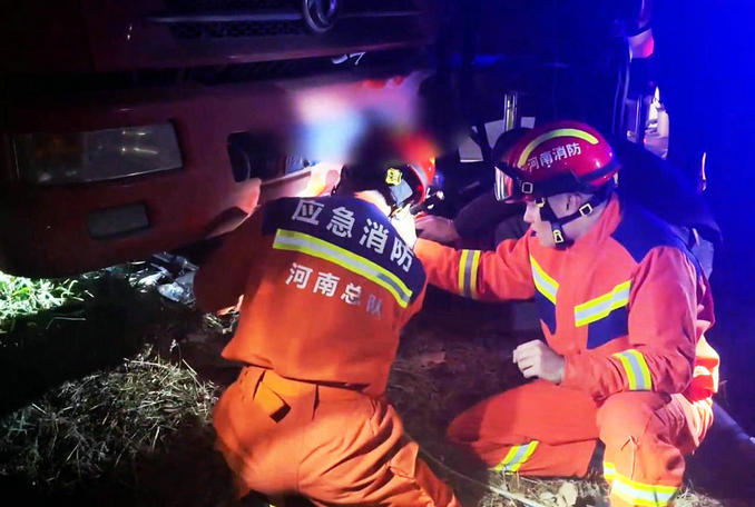 河南許昌:貨車與三輪車相撞一人被困 消防醫(yī)護聯(lián)手成功實施救援