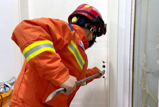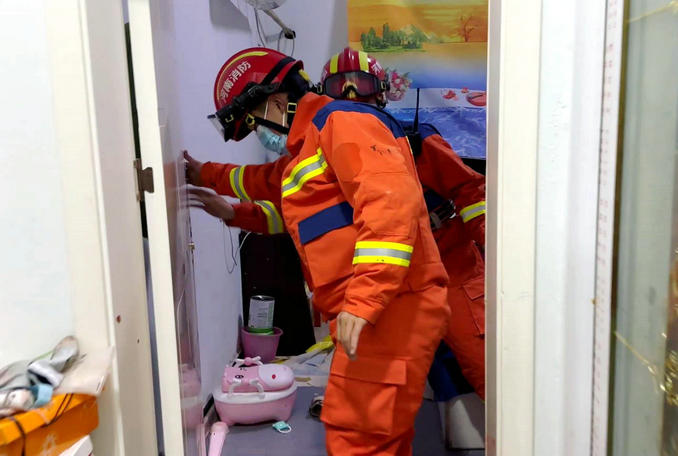 指揮員原計(jì)劃使用撬杠破拆后,然后用力把門踹開。因擔(dān)心踹開門的瞬間,可能碰到房里面哭鬧的孩子,決定改變救援方案。詢問家屬得知,孩子臥室的窗戶沒有上鎖。