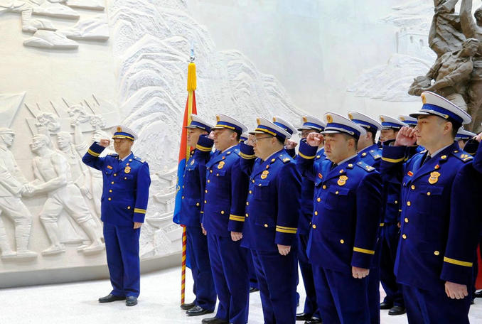 指戰(zhàn)員整齊列隊(duì),在指揮員洪亮的口令中,統(tǒng)一脫帽向?yàn)楦锩徒ㄔO(shè)事業(yè)英勇獻(xiàn)身的烈士默哀,向?yàn)槊褡濯?dú)立和人民解放建立不朽功勛的革命先烈致敬。