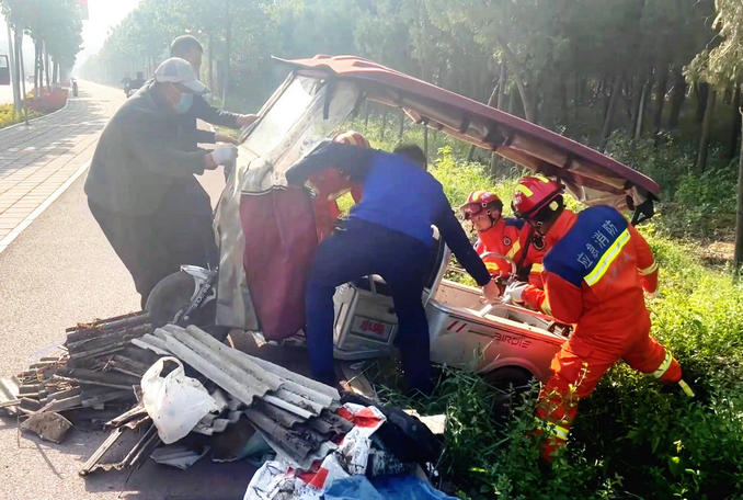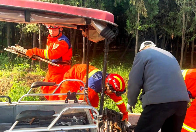 河南禹州:老人騎三輪車不慎墜入路坑 消防隊員迅速趕赴現(xiàn)場救援