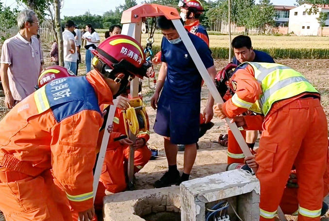 河南鄢陵:一名老人不慎墜入灌溉機(jī)井 消防隊(duì)員火速趕赴現(xiàn)場救援