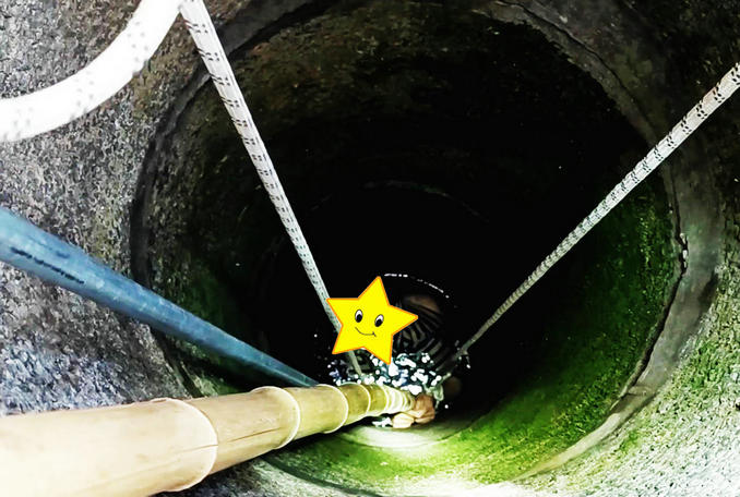 到達(dá)現(xiàn)場后,救援人員發(fā)現(xiàn)墜入井內(nèi)的是一位60多歲的大娘,在井下發(fā)出痛苦的呻吟聲。