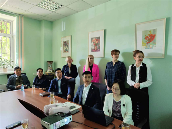 中新河南網(wǎng)6月8日電:北京時間6月7日下午(莫斯科當?shù)貢r間6月7日上午),河南省臺前縣政協(xié)主席李傳軍帶領縣商務局、縣市場監(jiān)管局主要負責同志拜訪企發(fā)絲路科技發(fā)展有限公司董事長孫天樞和米格速達國際物流總經(jīng)理趙地,雙方圍繞臺前羽絨“跨出中國門,走進俄羅斯”這一核心主題進行座談交流。