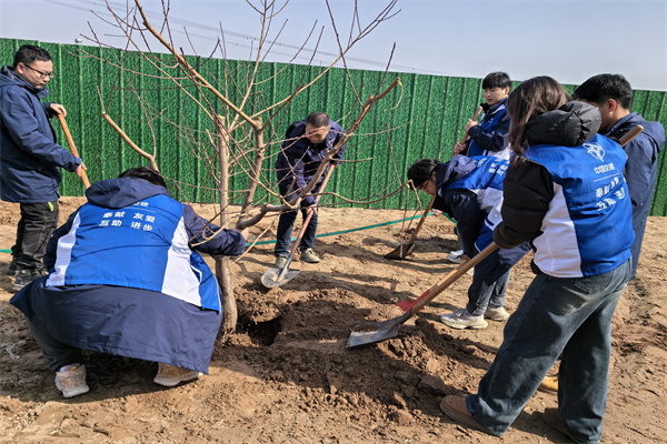 在“‘植’此青綠,不負(fù)春光”主題植樹活動(dòng)中,志愿者們在項(xiàng)目黨支部副書記熊濤的帶領(lǐng)下,挖土刨坑、揮鍬培土、扶直樹木、澆水灌溉,大家團(tuán)結(jié)協(xié)作,井然有序的將一顆顆小樹植入土中。經(jīng)過一個(gè)多小時(shí)的勞動(dòng),讓十多顆桃樹在項(xiàng)目駐地“安家落戶”。