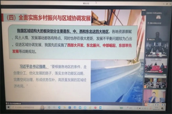 11月4日下午,中華職教社組織線上學(xué)習(xí)“二十大”會(huì)議精神,許正中教授從四個(gè)方面系統(tǒng)解讀了二十大會(huì)議精神的新思想、新觀點(diǎn)、新舉措。解讀既有思想性、理論性,又有親和力和針對(duì)性,講解高屋建瓴,深入淺出,講的透、講的深、講的活,認(rèn)真聆聽(tīng)學(xué)習(xí)之后,收益匪淺,收獲頗多。