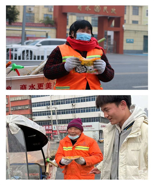 中新河南網(wǎng)2月5日電:“十五的月兒圓又圓,十五的湯圓甜又甜”。農(nóng)歷正月十五元宵節(jié),是我國(guó)的傳統(tǒng)節(jié)日,大街小巷都洋溢著節(jié)日的喜悅,為進(jìn)一步弘揚(yáng)中華民族優(yōu)秀傳統(tǒng)文化,營(yíng)造文明溫暖的節(jié)日氛圍,2月4日上午,周口中英文學(xué)校開(kāi)展“小小湯圓,濃濃深情”活動(dòng),九年級(jí)學(xué)生代表在校領(lǐng)導(dǎo)的帶領(lǐng)下走進(jìn)社區(qū)街道,為堅(jiān)守崗位的公安干警、城管人員、環(huán)衛(wèi)工人送去節(jié)日的祝福,向?yàn)閯?chuàng)建文明城市而默默奉獻(xiàn)的最可愛(ài)的人致以崇高的敬意。