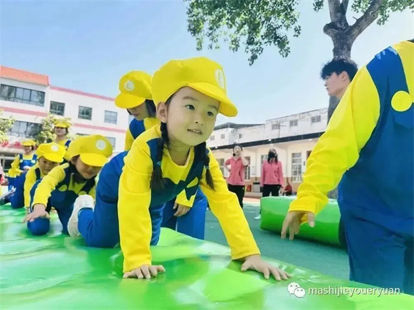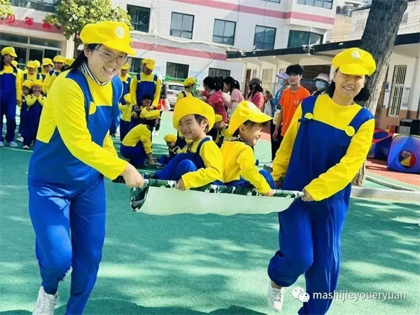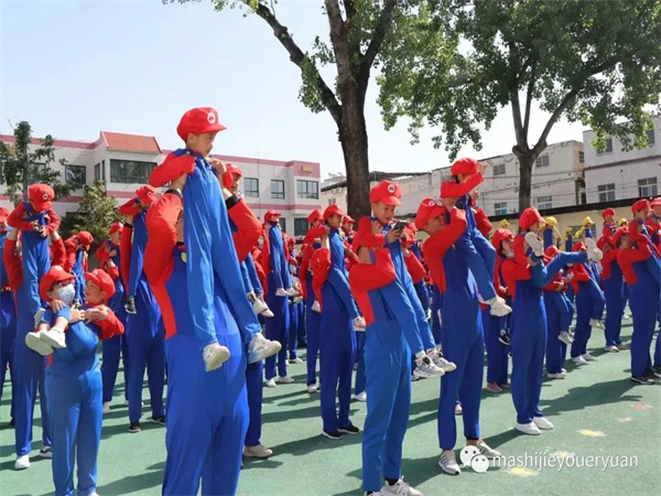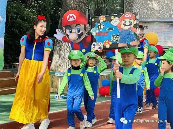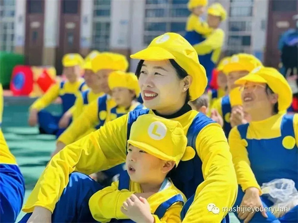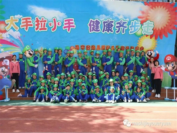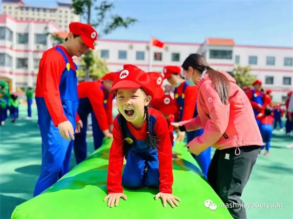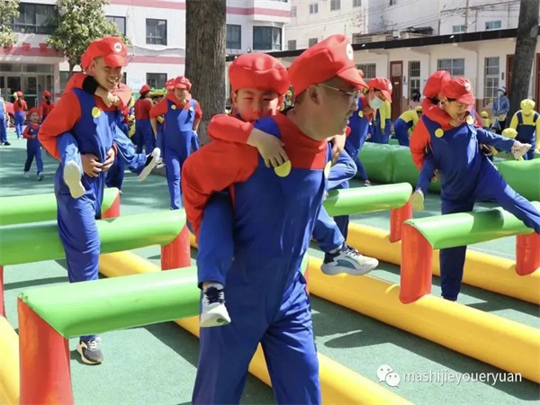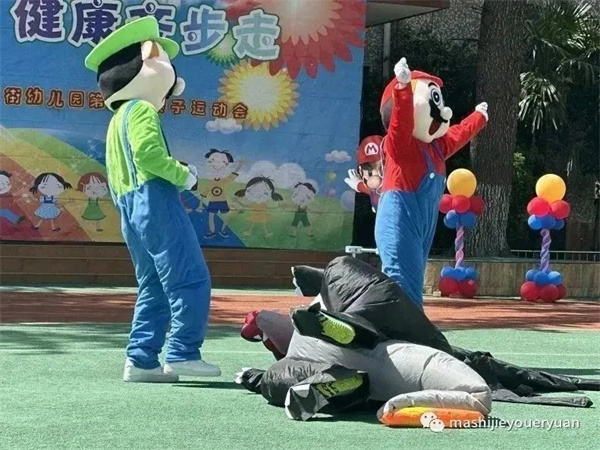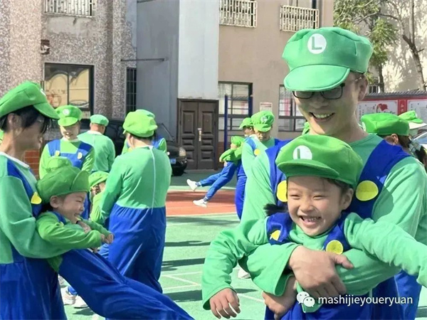 超人老師帶孩子們跳馬里奧熱身操,積攢愛的能量。