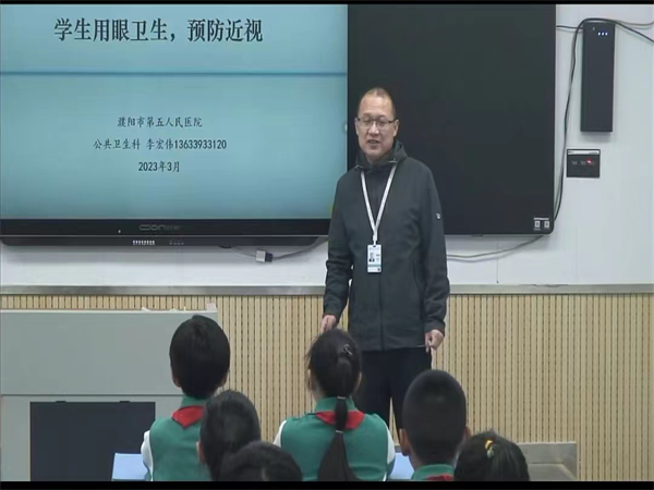 為使愛國衛(wèi)生意識持續(xù)深入人心,市六中還特邀學(xué)校健康副校長李宏偉到校做愛眼護(hù)眼健康知識講座,李宏偉結(jié)合實例給學(xué)生上了一堂精彩的衛(wèi)生用眼課。同學(xué)們紛紛表示,李宏偉這節(jié)課太實用了,我們一定會按他要求的去做,保護(hù)好自己的眼睛。另外學(xué)校還發(fā)動學(xué)生互結(jié)對子,組成“愛眼護(hù)眼”互助小組,共同學(xué)習(xí)宣傳愛眼護(hù)眼常識,互相監(jiān)督,共同養(yǎng)成愛眼護(hù)眼的好習(xí)慣。學(xué)校堅持眼保健操制度,每天下午第二節(jié)課后組織學(xué)生做眼保健操,為了保證學(xué)生眼保操質(zhì)量,政教處、少先隊和學(xué)生會每天對各班的眼保健操進(jìn)行檢查評比,一周一公布,將眼保健操納入班級十星級文明班級、十星級文明中隊考核,學(xué)生護(hù)眼愛眼意識進(jìn)一步增強。