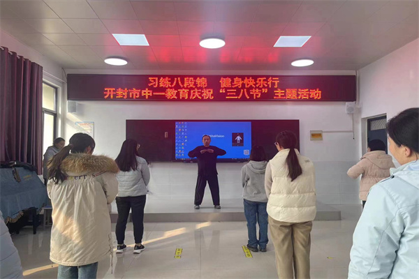 3月6日下午,學(xué)校邀請(qǐng)到路式八段錦第二代傳人、開封市健康管理師協(xié)會(huì)路式八段錦推廣站站長(zhǎng)王偉老師到校授課。禹王臺(tái)區(qū)教育團(tuán)工委、中一教育集團(tuán)女教師參與本次活動(dòng)。