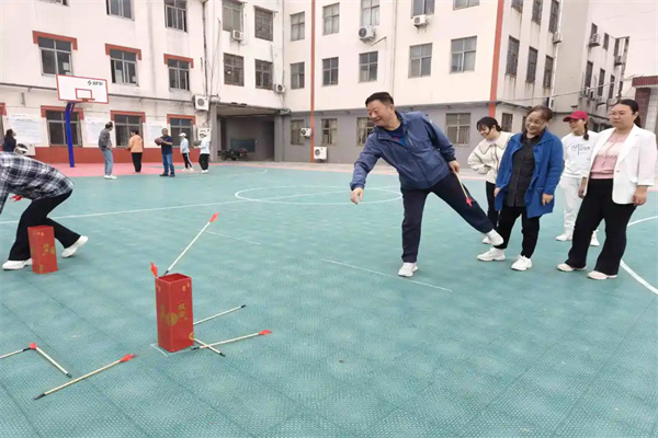 4月28日上午,學(xué)校工會精心組織了教職工趣味運動會。運動會設(shè)置了集體項目和投壺、定點投籃、擲沙包等個人項目。集體項目趣味背夾球,老師們齊心協(xié)力、奮力爭先,緊張又歡樂的氣氛彌漫了整個運動場。趣味運動在傳遞快樂的同時,也展現(xiàn)了教職工凝心聚力、奮力拼搏的風(fēng)采。