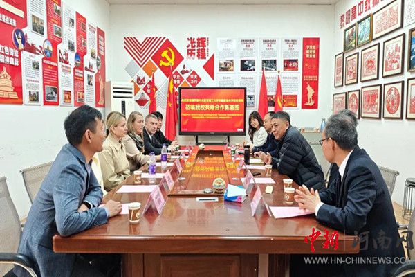 2025年3月27日上午,來自俄羅斯托木斯克理工大學(xué)、基斯洛夫?qū)W校教育代表團(tuán)的瑪麗娜女士、烏里亞娜女士、葉夫根尼婭女士、弗拉基米爾·謝爾蓋耶維奇先生,在開封新民科技中等專業(yè)學(xué)校校長李運乾,開封文化藝術(shù)職業(yè)學(xué)院新民學(xué)院院長馬賽楠等領(lǐng)導(dǎo)的陪同下走進(jìn)開封新民科技學(xué)校,開啟了一場跨越國界的教育合作交流之旅。