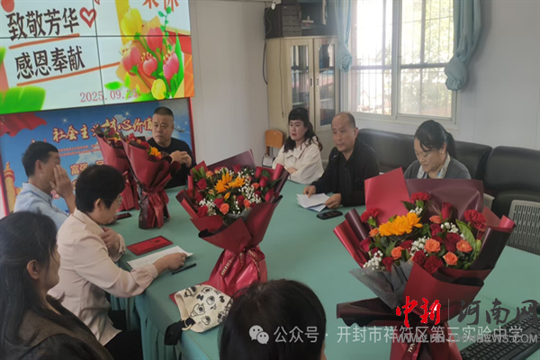 中新河南網(wǎng)9月26日電:春風化雨數(shù)十載,桃李芬芳滿天下。2025年9月25日上午,開封市祥符區(qū)第三實驗中學在北樓會議室為即將退休的王運宏副校長、王麗華老師、蔡士紅老師、翟佩曄老師舉行了簡約而不失溫馨的榮休會,以此向即將開啟人生新篇章的四位老師致以最崇高的敬意。