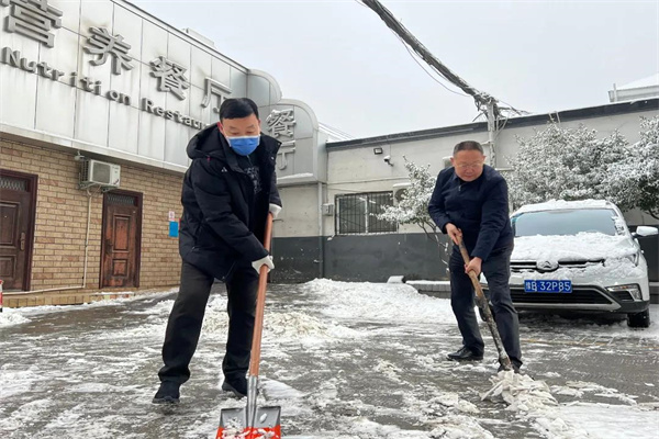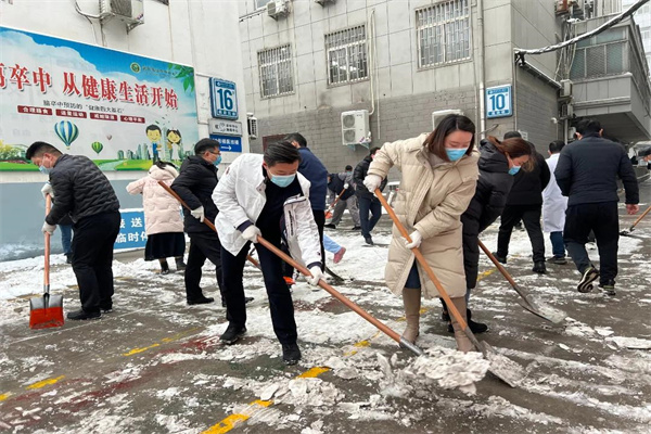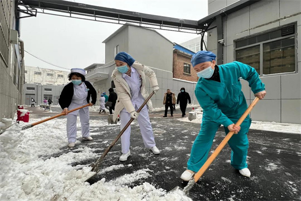 在掃雪活動中,組織井然有序,大家干勁十足,場面熱火朝天,大家揮舞著簡易的工具,經(jīng)過幾個小時的緊張清掃,院內(nèi)道路基本通行。很多病人行走在剛剛開出的通道,看著職工忘我地掃雪除冰,紛紛投以贊許的目光。(王旋 吳茜婷)