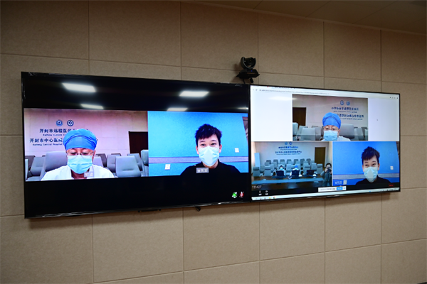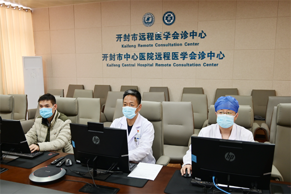 中新河南網(wǎng)3月3日電:3月1日,在開(kāi)封市遠(yuǎn)程醫(yī)學(xué)會(huì)診中心(開(kāi)封市中心醫(yī)院遠(yuǎn)程醫(yī)學(xué)會(huì)診中心),開(kāi)封市中心醫(yī)院神經(jīng)內(nèi)科主任、主任醫(yī)師、醫(yī)學(xué)博士韓新生,呼吸ICU主任、副主任醫(yī)師郎波正現(xiàn)場(chǎng)連線會(huì)診中心成員單位——杞縣裴村店鄉(xiāng)衛(wèi)生院,為一名危重患者提供遠(yuǎn)程會(huì)診服務(wù)。