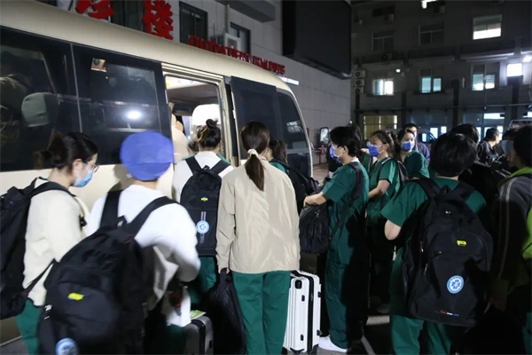 中新河南網5月7日電:5月6日晚19:20,接開封市衛(wèi)生健康委緊急通知,緊急抽調23名護理人員及2名醫(yī)生馳援蘭考縣集中醫(yī)學關愛中心。開封市中心醫(yī)院迅速部署,由醫(yī)務部和護理部牽頭,多部門緊急聯(lián)動,迅速完成人員選派、物資籌備和車輛集結等準備工作。20:10開封市中心醫(yī)院醫(yī)療隊25名隊員火速集結完畢,連夜出發(fā)趕往目的地。隊伍中有抗疫經驗的援鄂隊員,有多次支援核酸采集工作的護理骨干,有下夜班來不及休息匆匆趕回醫(yī)院的護理同志……
