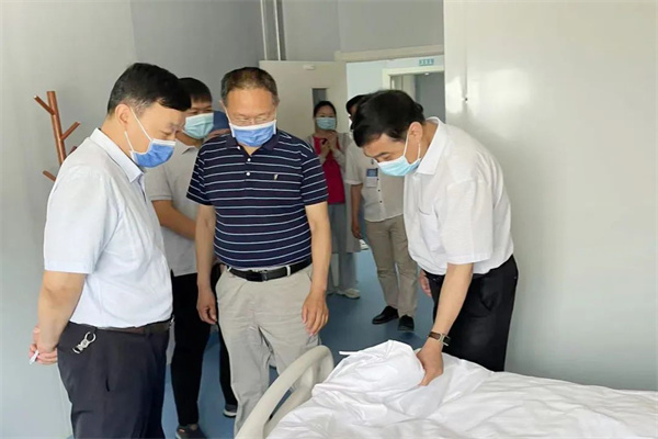 6月18日上午,開封市中心醫(yī)院黨委書記劉靜宇、院長李華強來到開封市健康關愛中心進行調研指導,現(xiàn)場查看籌備工作。劉靜宇書記深入了解各項分工及工作制度落實情況,查看隔離間物資配備情況,指導流程演練。他叮囑派駐隊:一定要嚴格執(zhí)行各項制度和流程,保護自身安全,為隔離觀察對象提供優(yōu)質的健康觀察服務和舒心的人文關懷輔導,全力以赴完成黨和政府交給的光榮使命。