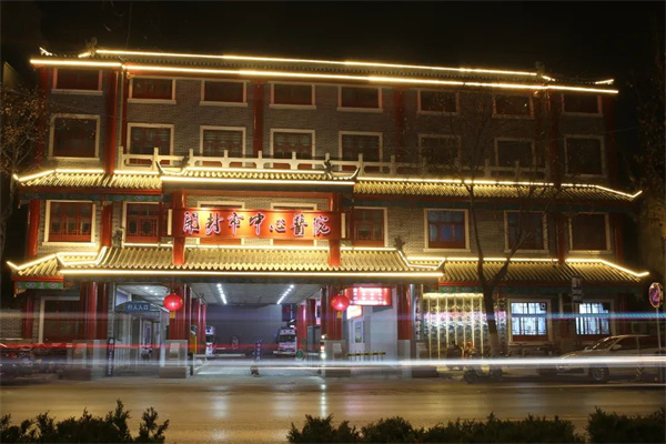 2022年,醫(yī)院總院區(qū)北門完成了整體規(guī)劃的設(shè)計(jì)改造項(xiàng)目。新裝修的門牌樓上,整整齊齊地掛著兩只大紅燈籠,夜幕降臨,五顏六色的霓虹燈照亮院大門門樓,和古樸端莊的書店街相映成趣,盡顯新春祥和氣氛。