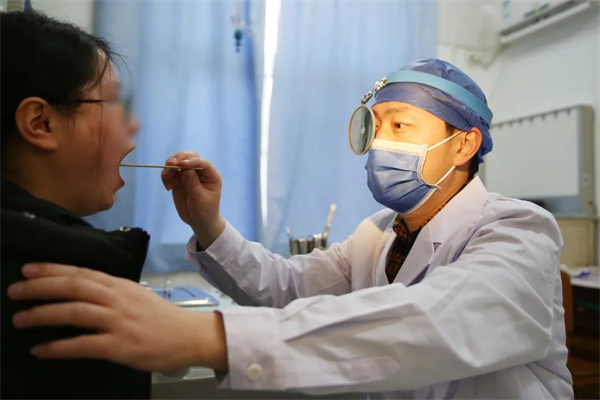 “啊,張嘴!”金銘鑫醫(yī)生語氣溫柔地讓病人抬起頭,輕輕地張開嘴,拿出口袋里的醫(yī)用小手電筒照了照,“好,恢復(fù)得不錯”。