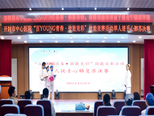 中新河南網(wǎng)4月23日電:為提升醫(yī)院青年員工崗位技能,壯大醫(yī)院“星青年”骨干力量,展現(xiàn)青年醫(yī)護(hù)人員在患者搶救過程中時效救治、規(guī)范操作的工作作風(fēng)。按照院團(tuán)委“醫(yī)心向黨 青春飛揚(yáng)”主題活動周系列活動安排,4月22日上午,開封市中心醫(yī)院“百YOUNG青春 技能競彩”——單人徒手心肺復(fù)蘇技能競賽活動鳴鑼開賽。全院青年職工積極參與,經(jīng)過層層選拔共14名選手進(jìn)入決賽。