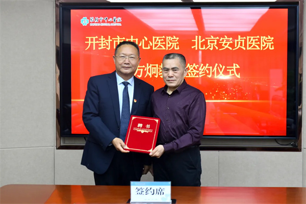 開封市中心醫(yī)院院長(zhǎng)韓新生與黃方炯教授簽訂合作協(xié)議