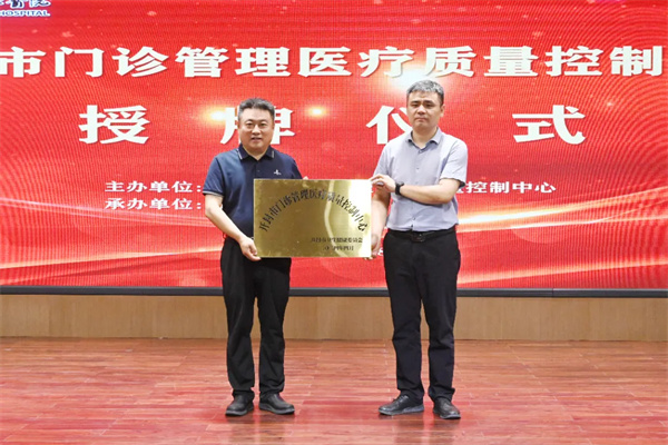 在授牌儀式環(huán)節(jié),開封市衛(wèi)生健康委員會醫(yī)政醫(yī)管科科長劉林向開封市門診管理醫(yī)療質(zhì)量控制中心主任委員趙海源授予“開封市門診管理醫(yī)療質(zhì)量控制中心”牌匾。