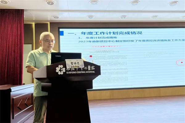 開封市麻醉質(zhì)控中心主任賀偉忠做了《開封市麻醉質(zhì)控工作報告》向與會人員通報了2023年全年及2024年上半年開封市麻醉質(zhì)控工作相關(guān)情況,傳達(dá)了省質(zhì)控中心 4 月份質(zhì)控會議相關(guān)精神,并就下半年質(zhì)控工作進(jìn)行了安排。