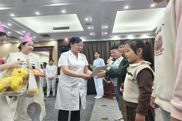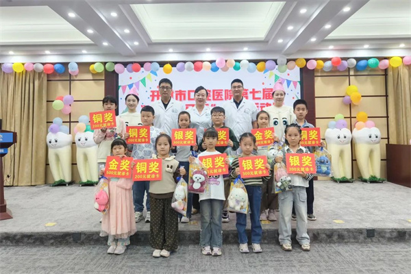 隨后,第三屆“健康口腔助成長”兒童繪畫展頒獎儀式正式開始。本屆繪畫展獎品為開封市口腔醫(yī)院的就診充值卡、定制兒童牙刷及精品卡通玩偶等?谇会t(yī)院名譽院長李彩霞、黨支部書記王波、院長張運祥為這些獲獎的小朋友頒發(fā)了獎品,以此表彰他們在繪畫作品中所展現(xiàn)出的非凡創(chuàng)造力以及令人贊嘆的藝術才華。這不僅僅是一份簡單的獎勵,更是對小朋友們創(chuàng)作力的高度認可與贊揚,承載著鼓勵與期望,激勵著他們在未來的日子里繼續(xù)發(fā)揮自己的創(chuàng)造力,為保護牙齒、關愛口腔健康、守護全身健康奠定了堅實的基礎。