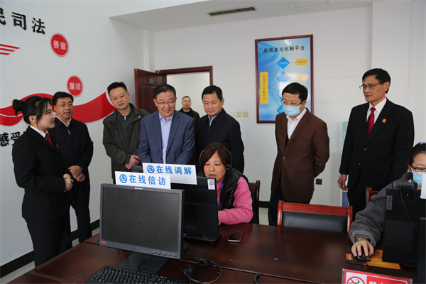 劉勇一行實地參觀了龍亭區(qū)矛盾糾紛多元化解中心、在線多元化解平臺、宋付振調(diào)解室、家事法庭等場所,詳細了解了龍亭區(qū)法院一站式多元解紛和訴訟服務體系的建設運行情況,對龍亭法院多元解紛工作取得的成效給予高度評價和肯定。