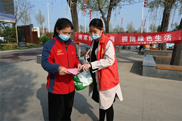 清明節(jié)也是踏青出游好時(shí)節(jié)。清明寒食好,春來(lái)百花開。春天的公園里百花齊放,生機(jī)盎然。4月1日下午,蘭考縣法院組織干警在金牛湖公園開展“追求綠色時(shí)尚 擁抱綠色生活”宣傳活動(dòng),在優(yōu)美的環(huán)境中向游玩群眾講解綠色意義,并倡議樹立文明綠色理念,文明出游,綠色生活。(陳莉)