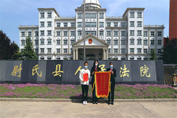 4月20日上午,在尉氏法院門前,當(dāng)事人手持一面寫(xiě)有“最美調(diào)解排民憂、高效為民促和諧”錦旗向尉氏法院表達(dá)感謝之情。