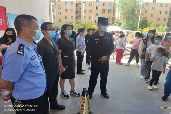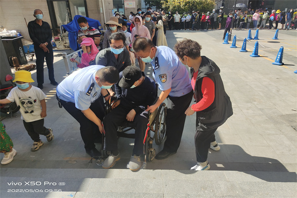 在檢測現(xiàn)場,干警們各司其職,分工協(xié)作,有的維護(hù)現(xiàn)場秩序,引導(dǎo)居民有序排隊(duì),保持1米以上安全距離;有的化身“大白”協(xié)助登記居民信息,認(rèn)真做好信息核對和錄入工作;有的為行動不便的老人提供座椅,并攙扶進(jìn)出,確保了整個(gè)核酸檢測工作有序、有效進(jìn)行。