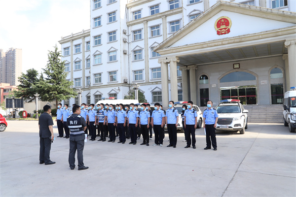 早上8時,尉氏法院院內(nèi),7輛警車,30名干警集結(jié)完畢,在“出發(fā)”的命令下奔赴騰房現(xiàn)場。