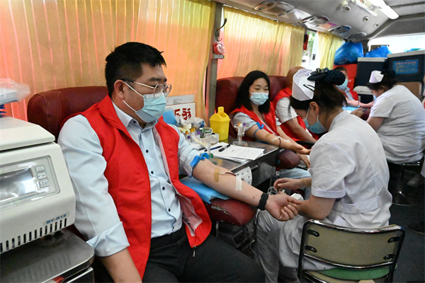 蘭考縣法院參加縣文明辦統(tǒng)一組織的無償獻(xiàn)血活動