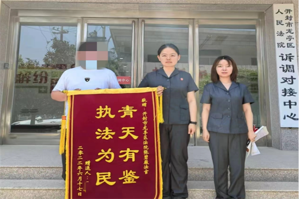 中新河南網(wǎng)6月20日電:近日,開(kāi)封市龍亭法院成功調(diào)解一起因故意傷害引發(fā)的刑事附帶民事案件,6月17日,被告人家屬將一面印有“執(zhí)法為民,青天有鑒”的錦旗送到了張碧薇法官手中,以此表達(dá)龍亭法院用心化解矛盾糾紛,切實(shí)為群眾辦實(shí)事的感激之情。